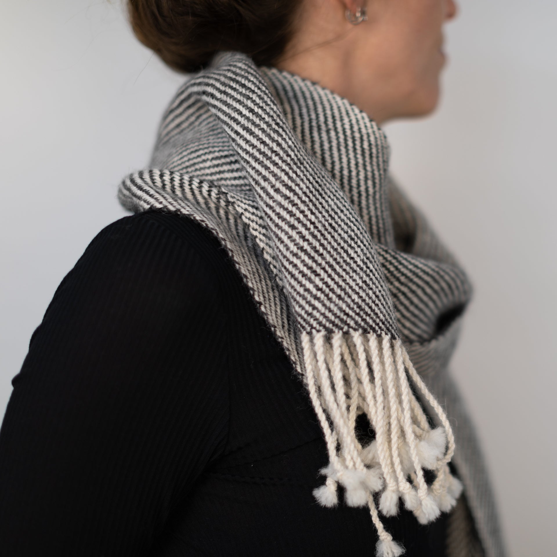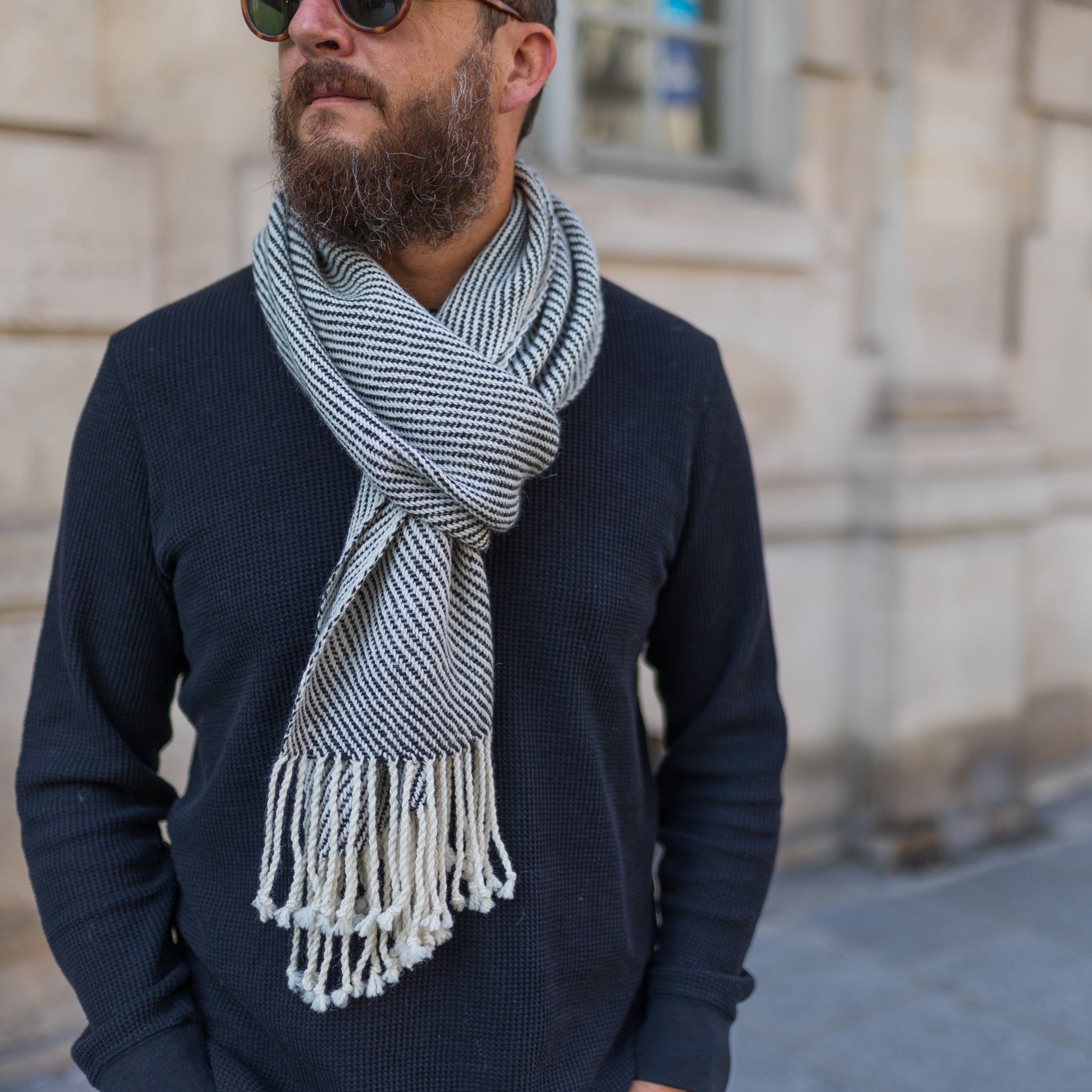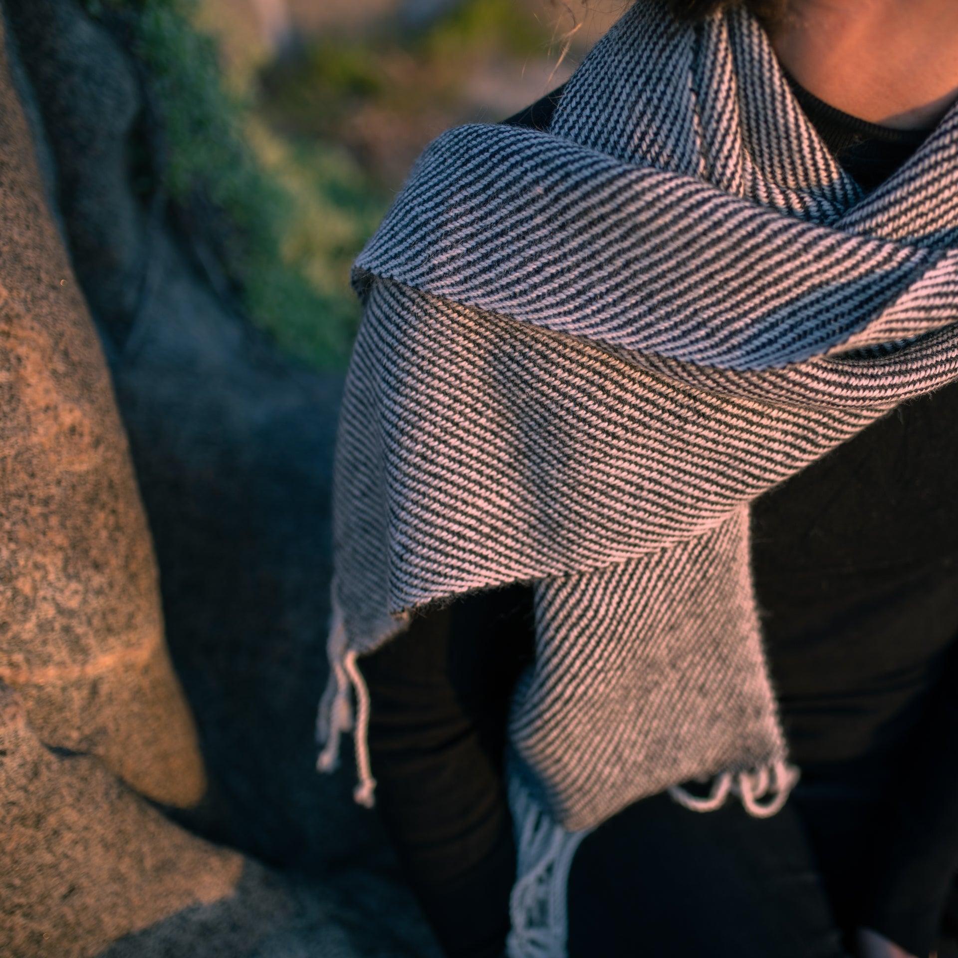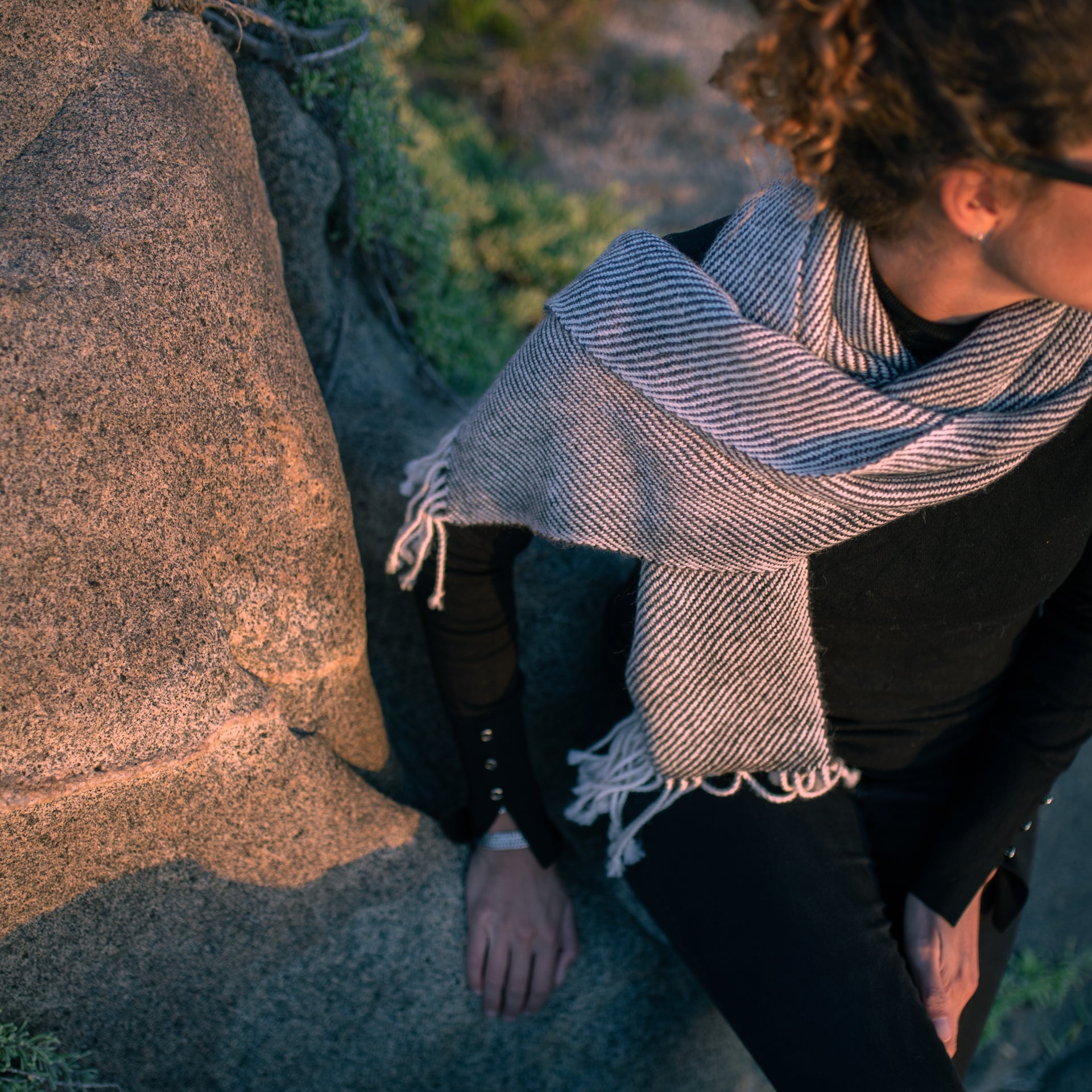 Nous adorons les écharpes en alpaga 🦙. Légères comme les herbes de l'Altiplano et douces comme la brise chaude du désert. Ce modèle élégant et intemporel avec des lignes diagonales noires et blanches, et ses jolies franges, mesure 30 cm de large et 207 cm de long, offrant de nombreuses façons de l’enrouler autour de votre cou ! Unisexe et raffinée, elle reflète l’élégance du camélidé andin.