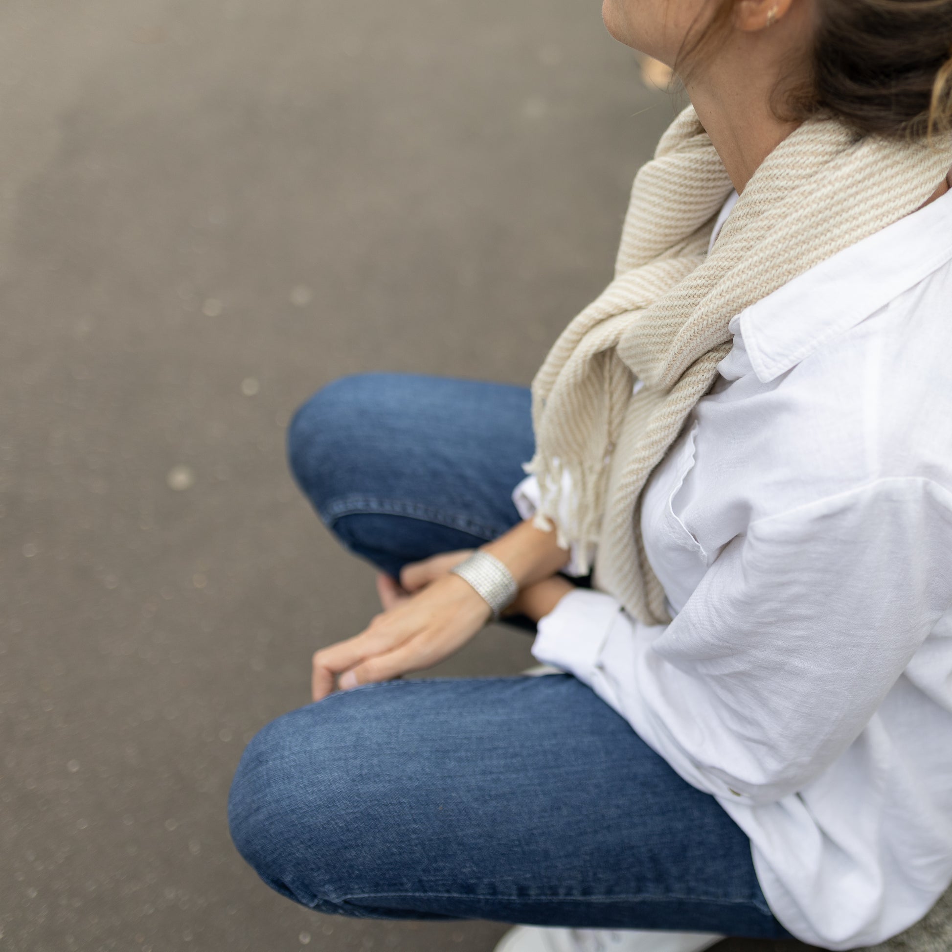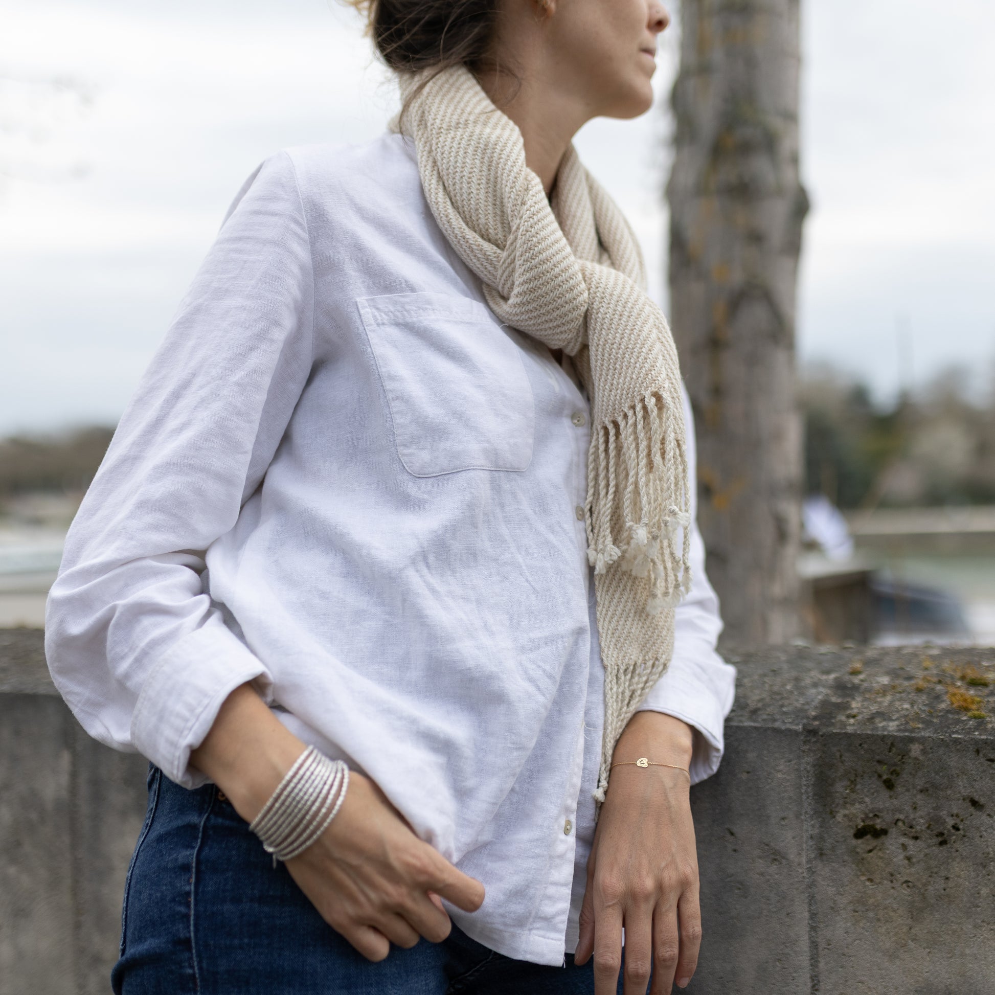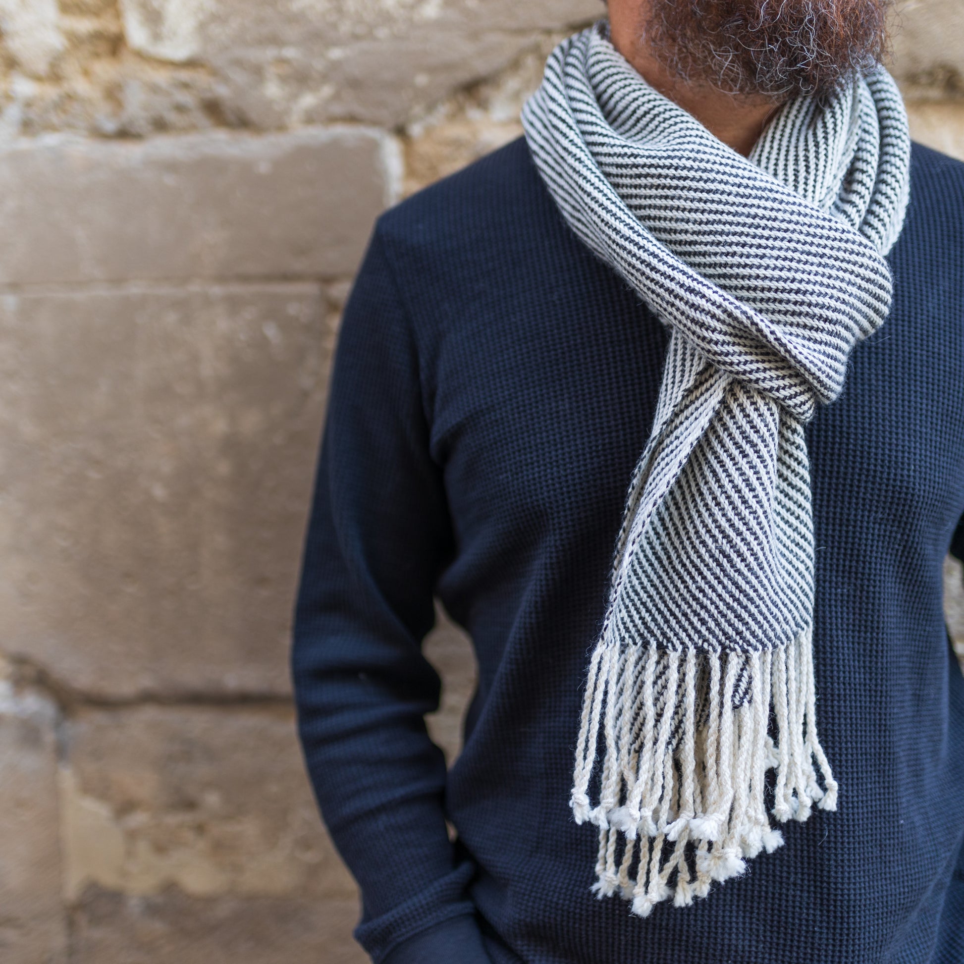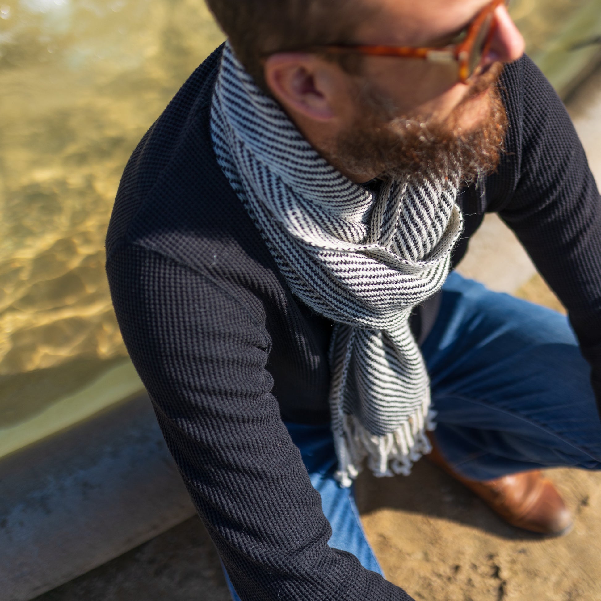 Nous adorons les écharpes en alpaga 🦙. Légères comme les herbes de l'Altiplano et douces comme la brise chaude du désert. Ce modèle élégant et intemporel avec des lignes diagonales noires et blanches, et ses jolies franges, mesure 30 cm de large et 207 cm de long, offrant de nombreuses façons de l’enrouler autour de votre cou ! Unisexe et raffinée, elle reflète l’élégance du camélidé andin.